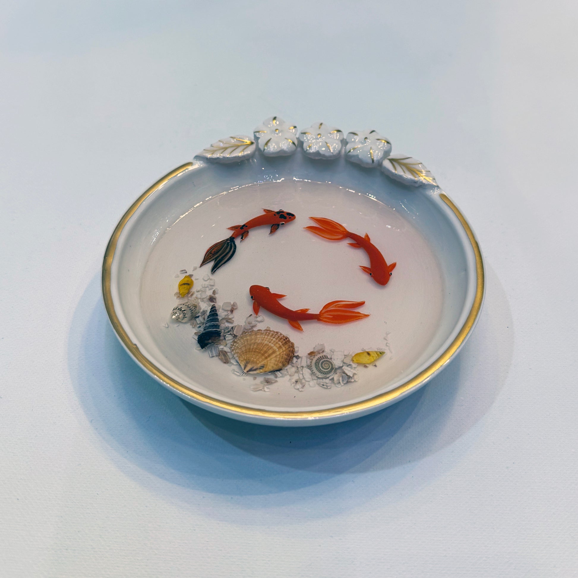Fish Bowl - Unique Large Ceramic Bowl with Sculptures of Fishes! The bottom of this bowl is designed with 3 sculptures of fish and shells. A unique bowl for Persian Nowrooz Haftseen instead of living fishes.
